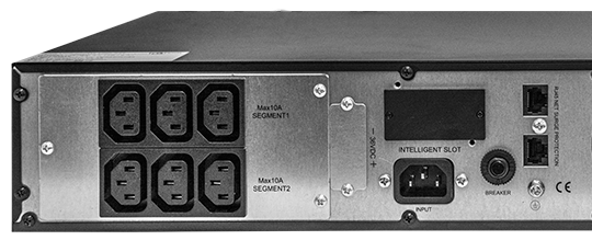 - Стандартные коммуникационные интерфейсы: один коммуникационный порт RS-232, один коммуникационный порт USB, а также внутренний слот для установки карты SNMP или «сухие» контакты