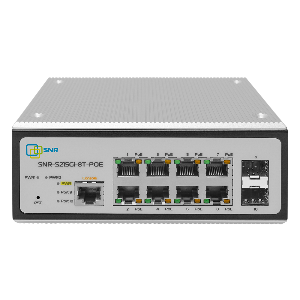 Промышленный PoE коммутатор SNR-S215Gi-8T-POE предназначен для использования в сложных условиях эксплуатации. Модель имеет весь необходимый набор функций, доступный для конфигурирования через простой и удобный web-интерфейс. Оборудование имеет защиту класса IP40 и расширенный температурный диапазон (от -40С до +85С).