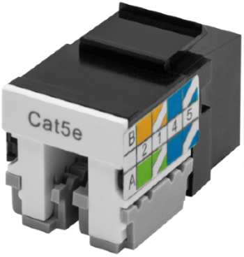 Каждый модуль снабжен цветовой маркировкой по стандарту T568A/B. Конструкция имеет специальный язычок, который обеспечивает надежную фиксацию модуля в панели/розетки. Все это позволяет с минимальными усилиями произвести оперативный монтаж и замену модуля в случае необходимости