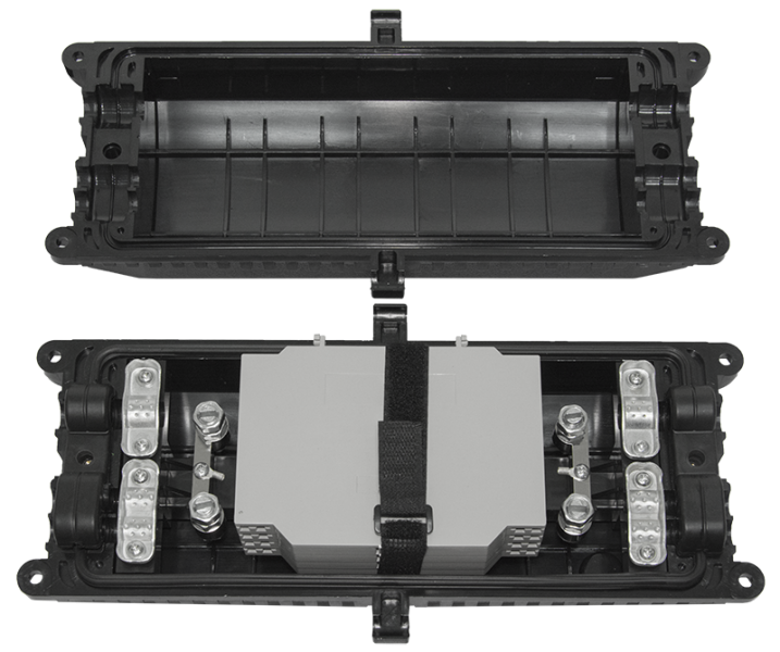 - Прочный корпус устойчив к УФ-излучению и перепадам температур, защищает ВОК от вибрационных и ударных нагрузок
