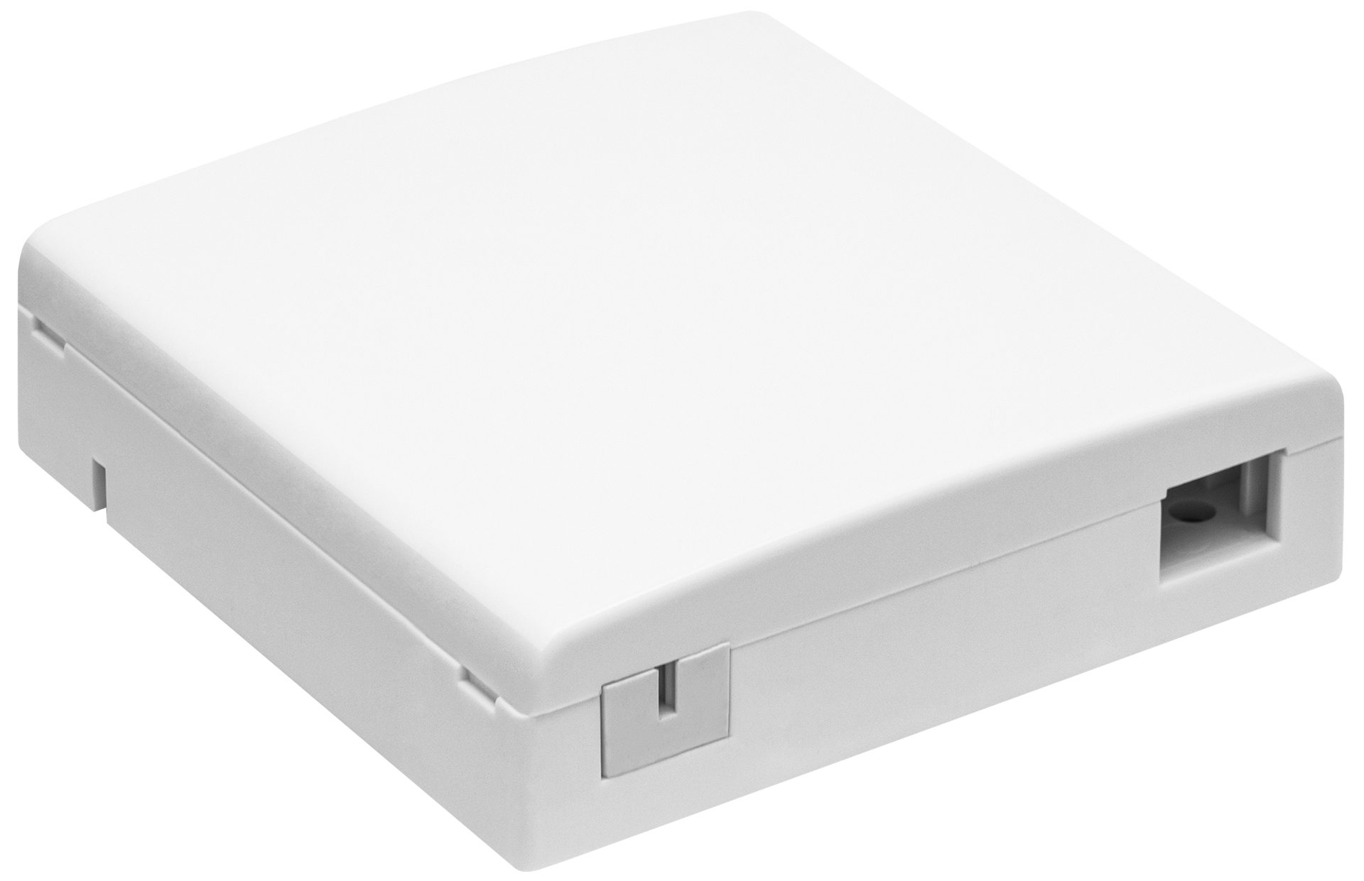 Абонентская коробка разработана для построения сетей PON, совместима со всеми типами абонентских кабелей. Внешний дизайн абонентской розетки максимально приближен к стандартным бытовым электророзеткам. Компактный пластмассовый корпус выполнен из материала, не распространяющий горение, внутренний конструктив розетки позволяет разместить запас ОВ, который укладывают вдоль внутренних краев, обеспечивает надежную защиту волокон и технологический доступ к пассивным элементам сети.