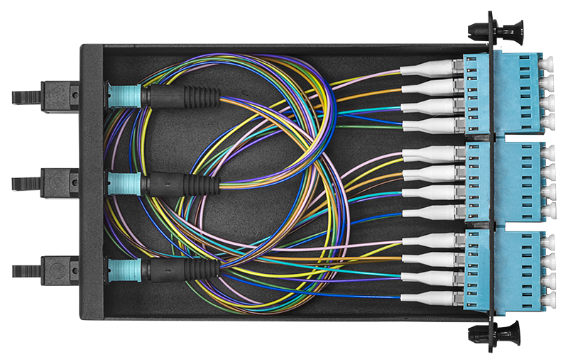 Кассеты MPO представляют собой высокоэффективное модульное решение для быстрого развертывания волоконно-оптических кабельных систем с поддержкой перспективных форматов передачи данных 40 и 100 Gigabit Ethernet. Конструктивно кассета MPO представляет собой переходник-разветвитель с 24-жильного оптического кабеля, оконцованного разъемом MPO, на стандартные разъемы оптических портов (LC, SC и других типов). Внутри подобных кассет используется только улучшенное оптоволокно (OM3/OS2), что в совокупности с качественными разъемами позволяет минимизировать потери сигнала.