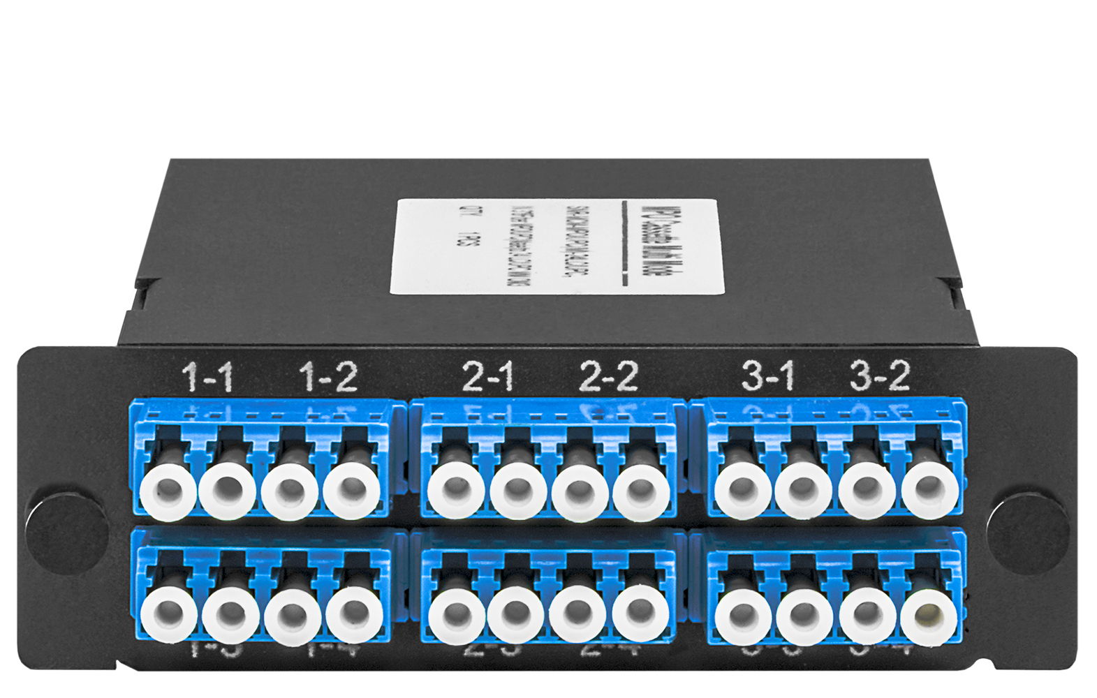 На лицевой стороне кассеты MPO располагаются стандартные оптические порты, обеспечивающие подключение 24 волокон. С задней части кассеты расположено до трех разъемов MPO.