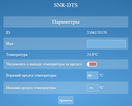 | Уведомлять о выходе температуры за предел | Посылать уведомление, если температура устройства вышла за указанный верхний или нижний предел |