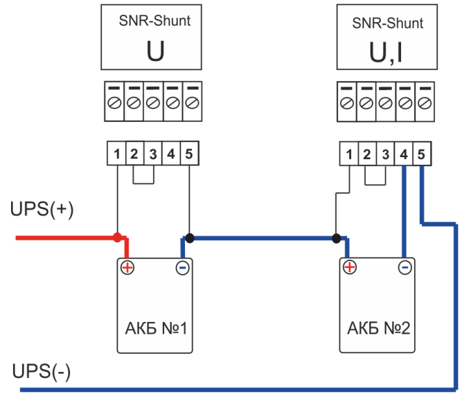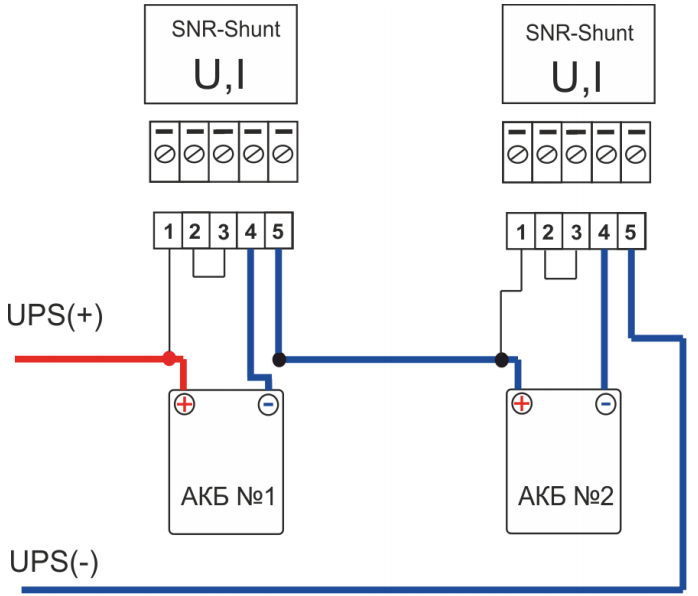 Вариант с подключением двух АКБ и двух SNR-SHUNT: