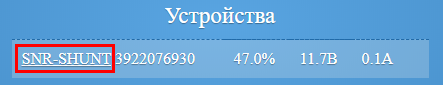 | SNR-SHUNT | Тип подключенного датчика. При нажатии на SNR-SHUNT происходит переход на страницу информации об устройстве |